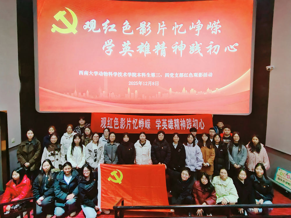 随后,全体成员共同观看红色电影《得闲谨制》,该影片以真实历史为蓝本,勾勒出一幅山河破碎之际中华民族不屈抗争的壮阔画卷。影片聚焦抗战关键时期,还原了金陵兵工厂辗转西迁、宜昌大撤退的悲壮历程,展现了平凡技术工人在乱世中的坚守担当,凸显了坚守者们 “天下兴亡,匹夫有责” 的家国情怀与英雄气概。观影过程中,大家凝心聚神,静心感悟先辈们的赤诚之心、担当之志、牺牲之举。有党员表示:“影片中宜昌大撤退的众志成城、石碑保卫战的浴血拼杀,让我读懂了‘爱国’从来不是空洞的口号,而是危难时刻的挺身而出、平凡岗位的坚守奉献。作为动科学子,我们当深耕专业领域,用畜禽养殖、动物健康等专业知识服务国家需求,以真才实干践行报国初心。”还有党员谈到:“历史警示我们,落后就要挨打,唯有自强不息、团结一心,才能抵御外侮。作为青年党员,我们必须铭记历史教训,化悲愤为力量,在学习科研中攻坚克难,在时代征程中勇挑重担。”