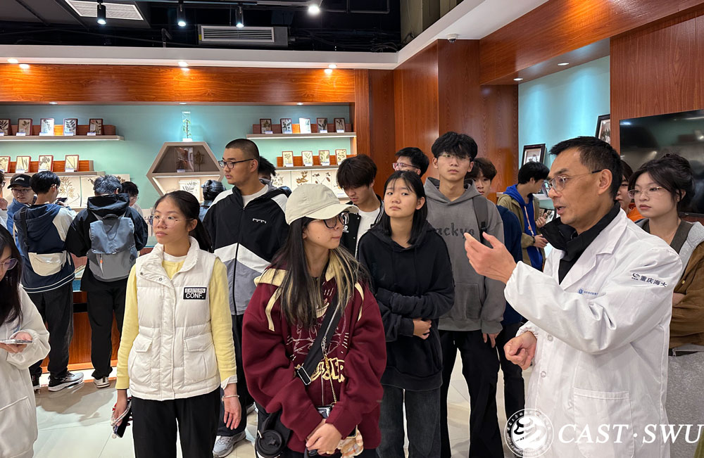 标本馆为新生们呈现了一场波澜壮阔的视觉与知识盛宴。实验中心罗文进为同学们详细讲解了标本馆的展品历史、种类等,在罗老师的细致引导下,同学们依次参观了动物解剖学标本室、水生动物标本室、饲料牧草标本室、中草药标本室四个展室。从陆地到海洋,从骨骼标本到透明标本,数千件动植物标本分门别类、栩栩如生地陈列展示。