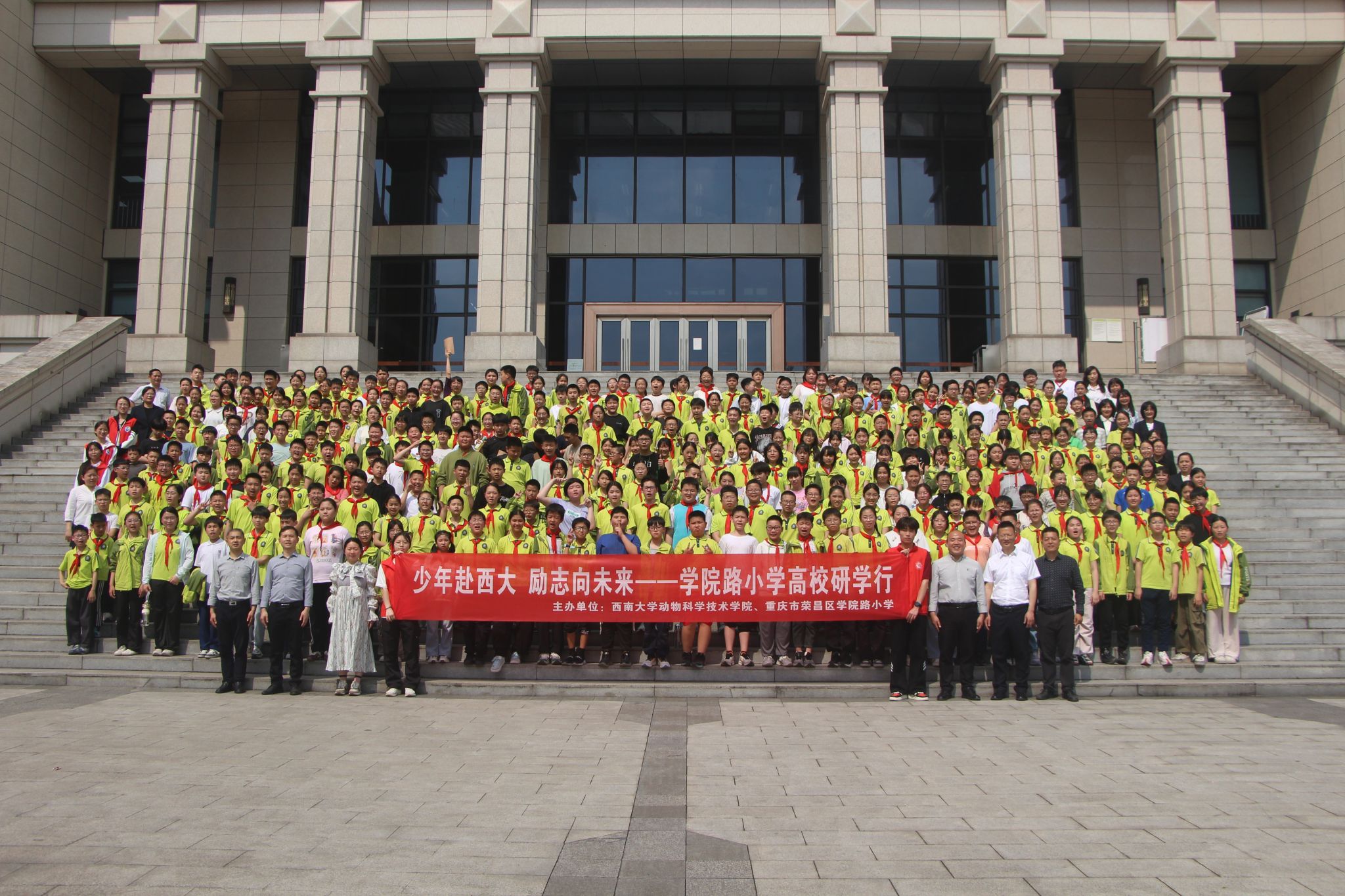 4月10日下午,成人动漫与重庆市荣昌区成人动漫路小学联合举办“少年赴西大 励志向未来”高校研学行活动。成人动漫路小学党委书记、校长陈绍宏,党委副书记刘扬奎,副校长贺学进、李南,成人动漫