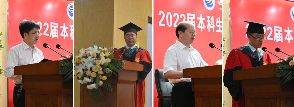 教师代表董国忠教授勉励全体毕业生一生要做懂感恩、真诚和正直、有情商、做事踏实和时间观念强、终生学习、少自私多奉献的“六种人”,祝福全体毕业生前程锦绣。