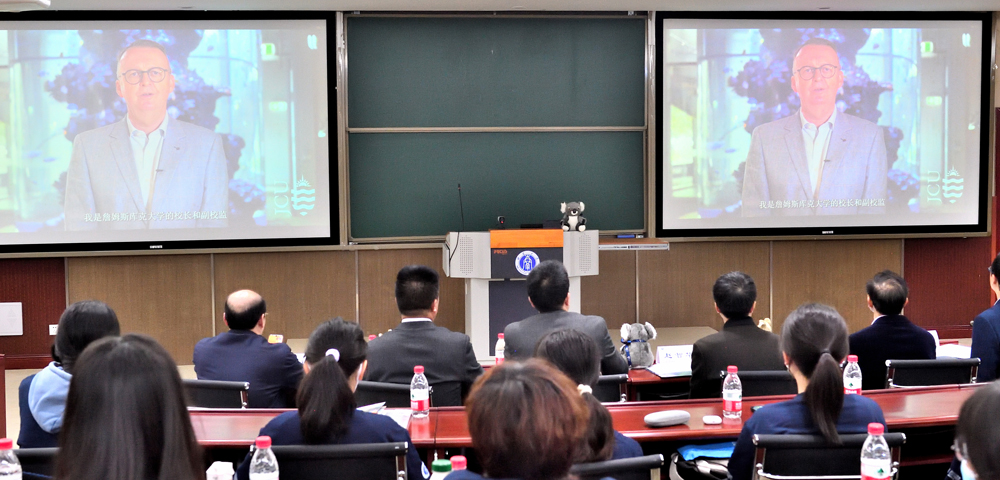 詹姆斯库克大学校长Simon Biggs教授通过录制视频致辞、Ron White教授线上直播致辞,给2022级新生详细介绍了詹姆斯库克大学的基本情况、中外合作办学项目的培养模式、理成人动漫的优势学科以及人才培养情况,对同学们通过合作办学项目赴澳大利亚学习表示热烈欢迎。