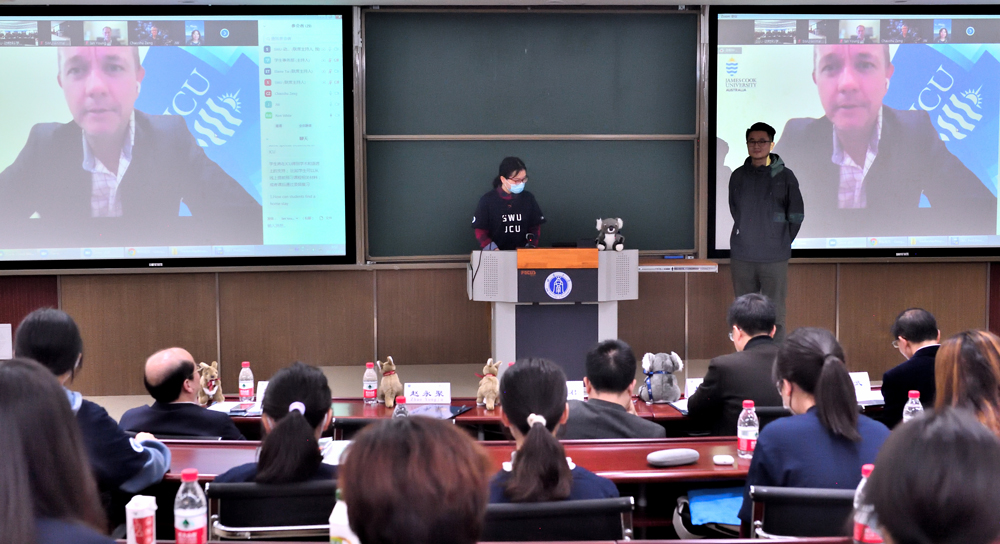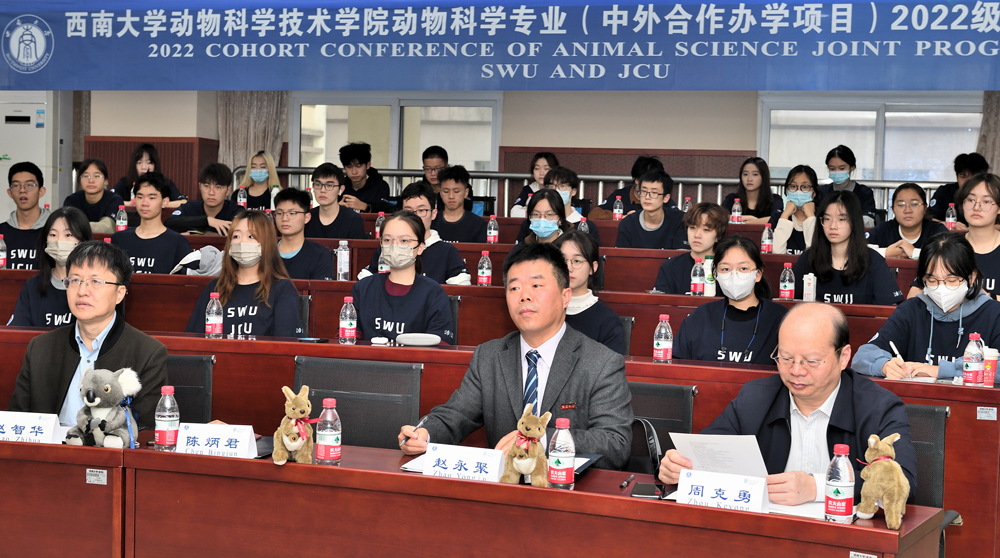 2022年10月30日上午,成人动漫与詹姆斯库克大学、澳大利亚教育集团共同举行动物科学专业(中外合作办学项目)2022级新生见面会,会议由成人动漫院长赵永聚教授主持。詹姆斯库克大学理成人动漫院长Ron White教授、项目联络人Chaoshu Zeng副教授、澳大利亚教育集团执行董事王晶教授、集团大学校长Ian Young教授、西南区域督学李长泰、成人动漫