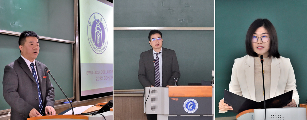 成人动漫教师代表范成莉、詹姆斯库克大学杰出校友Ian Young教授分别发言,他们结合各自的成长经历和工作经验给2022级新生们提出了宝贵的建议,鼓励同学们在大学期间尝试新鲜事物,实现多元化发展,同时希望同学们要对自己的未来做好合理规划。