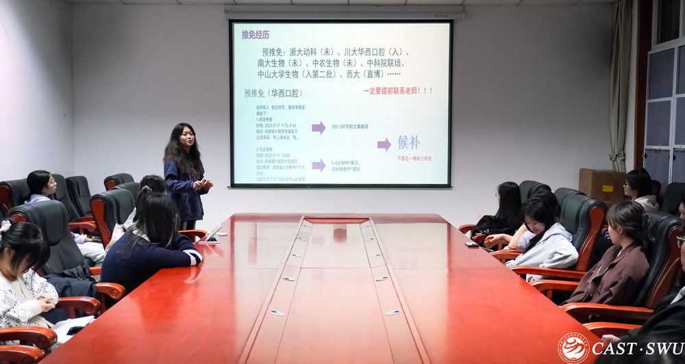 为加强动物科学(中外合作办学)专业学生的学业规划意识,推动学生深入了解保研政策与流程,提升升学竞争力,成人动漫于10月31日在37-219与32-210教室顺利举办2025年保研经验分享会。本次分享会邀请到本专业2022级8名成功保研至国内知名高校的优秀学生代表,围绕院校选择、材料准备、面试技巧、科研经历等方面展开交流,吸引了2023级诸多同学积极参与。